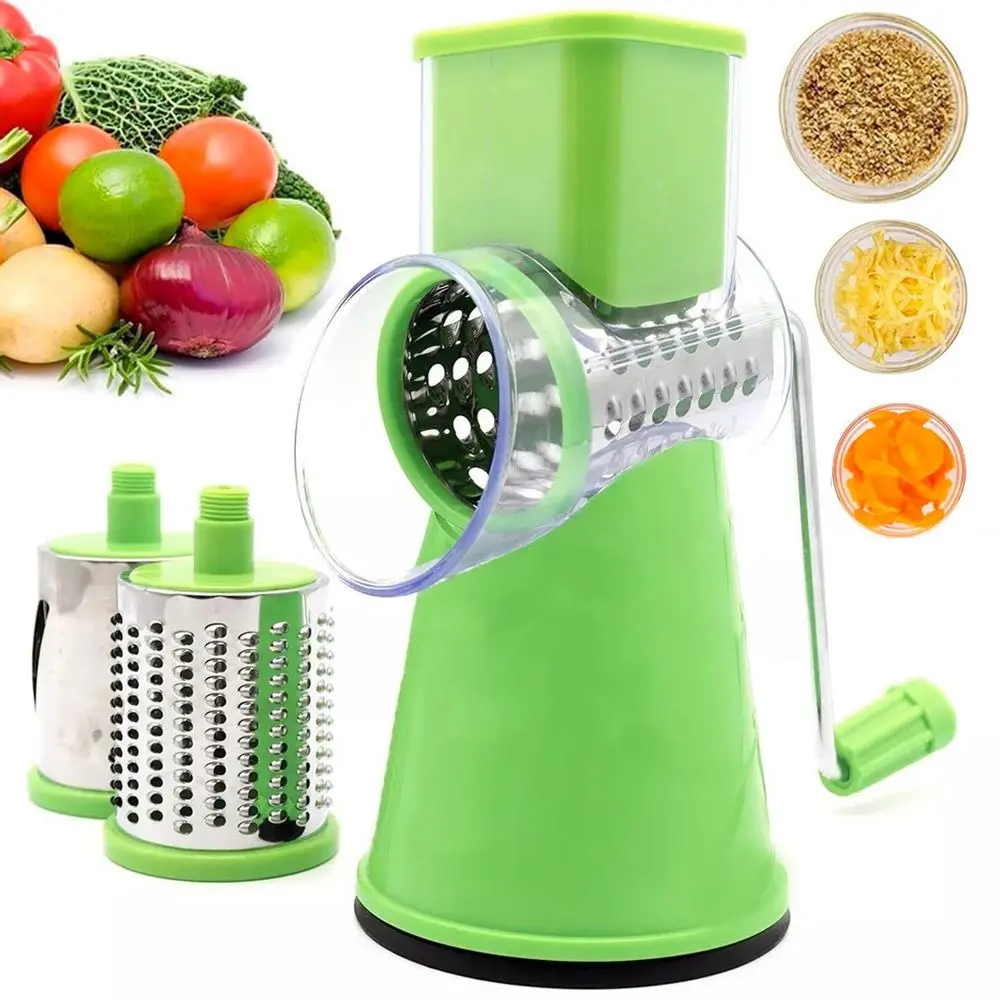 Práctica y eficiente, esta cortadora manual te permite rallar, rebanar y cortar verduras de manera rápida y sin esfuerzo. Incluye 3 tambores de acero inoxidable intercambiables, diseñados para diferentes tipos de corte: fino, grueso y en láminas.